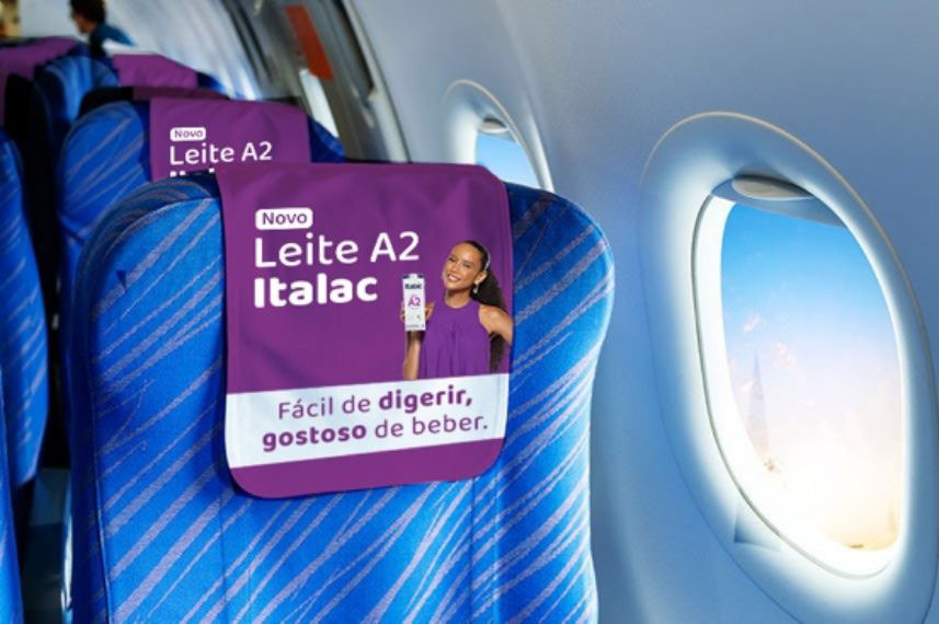 Ação em aviões e outros meios de locomoção, com parcerias estratégicas e comunicação integrada. Utilizamos o slogan “Viaje Tranquilo, Leite A2 te ajuda na digestão”, destacando todos os benefícios do produto. A campanha incluiu lanchinhos com Leite A2, propaganda nos assentos e vídeos nos encostos de banco, proporcionando uma experiência completa ao consumidor durante a viagem.