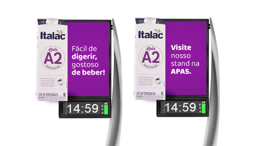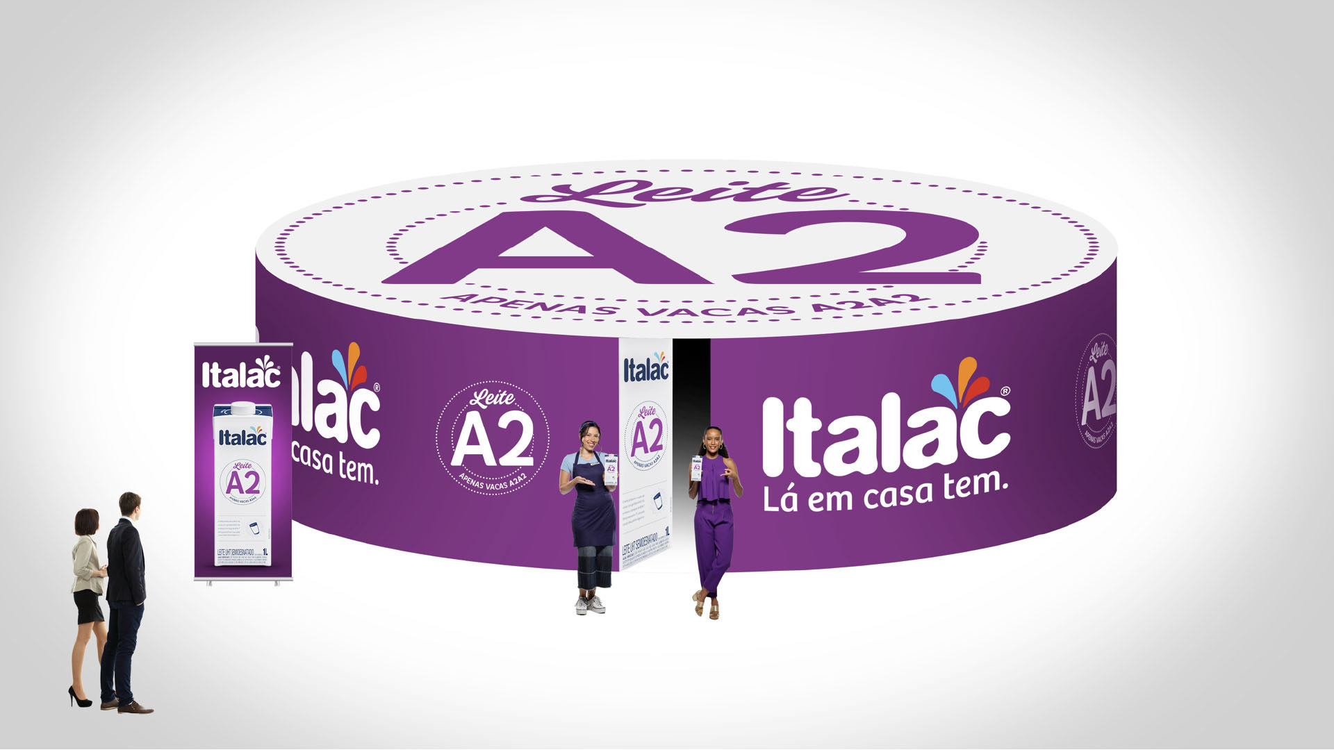 Para o lançamento do Leite Italac A2, aproveitamos a proximidade da Feira APAS como uma oportunidade de expandir a campanha muito além das redes sociais. Desenvolvemos uma estratégia 360º, pensando de forma criativa em maneiras de amplificar a comunicação e posicionar o A2 como uma grande novidade no mercado, o primeiro leite A2 lançado no Brasil.