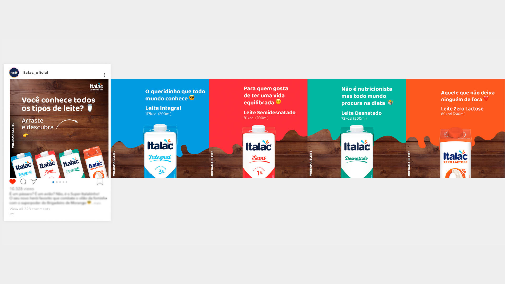 Um exemplo é o trabalho para a Italac, uma das principais marcas de laticínios do Brasil, conhecida por sua presença nacional e por uma comunicação enraizada na família e na vida cotidiana.